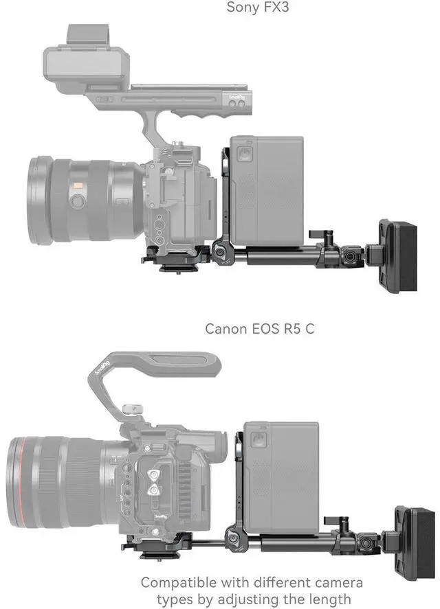 Experience the convenience and versatility of the SmallRig Advanced Compact V-Mount Battery Mounting System 4063B. This high-quality, durable mounting system is an all-in-one solution for your V-mount battery needs. It's not just a battery mount; it's a comprehensive system that includes a V-mount battery plate, an Arca-type quick-release plate, 15mm rods, and a chest pad for added stability during handheld shooting. The 4063B is designed with an adjustable baseplate that can be stretched to accommodate various sizes of mirrorless and DSLR cameras. This feature, coupled with a tool-less installation and adjustment process, makes it a time-saving and convenient choice for photographers and videographers.
