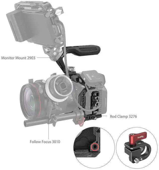 The design incorporates the classic red label of the Cinema EOS system, creating a seamless and stylish look that complements the camera. With its triple lock, anti-twist feature, the cage secures firmly to the camera, preventing any unwanted movement. In summary, the Black Mamba Handheld Full Camera Cage Kit for Canon EOS R5 C/R5/R6 is a reliable, sturdy, and robust solution for creators seeking to elevate their handheld shooting capabilities. It offers full access to camera controls, an ergonomic design for comfortable handling, and a multitude of attachment points for a wide array of shooting scenarios.