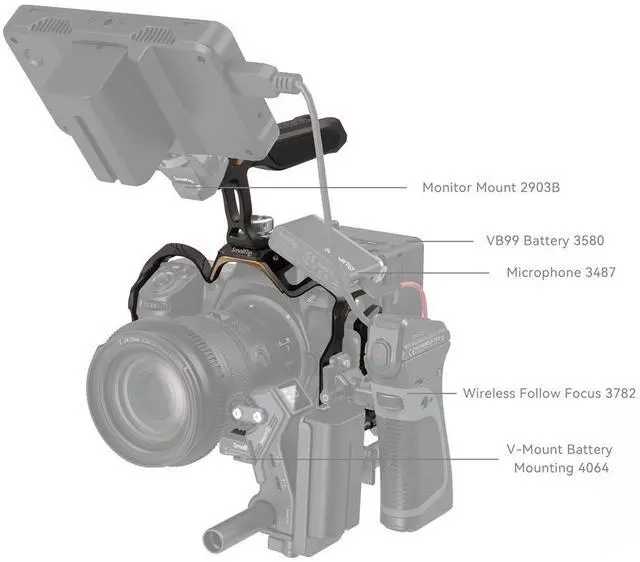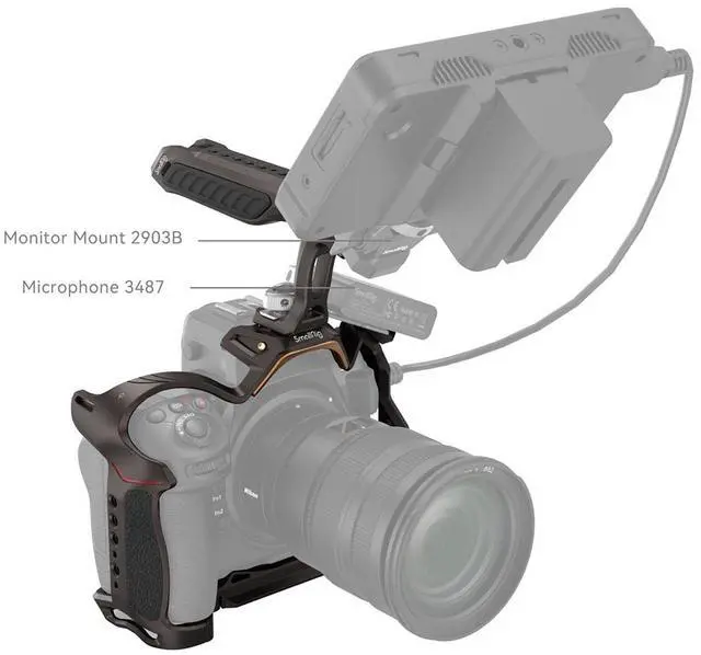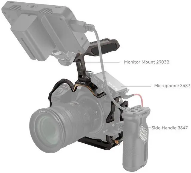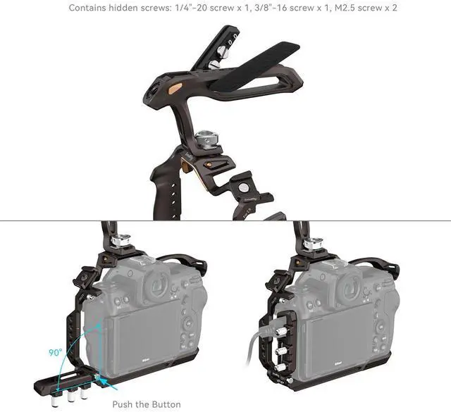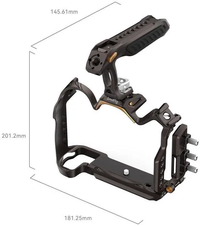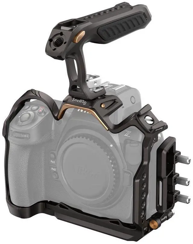 SmallRig "Night Eagle" Cage Kit for Nikon Z 8 4317 is designed to provide creators with a comfortable low-angle shooting experience, protect the camera, and expand the interface with a variety of accessories. The kit includes a cage, a top handle, an HDMI & USB-C cable clamp, and a cold shoe mount. The cage features a brand-new design: gun brown curves interspersed with gold to supplement the classic style of the Nikon Z 8. The new press and flip design of the cable clamp allows you to open the interface cover without disassembling it to save time.