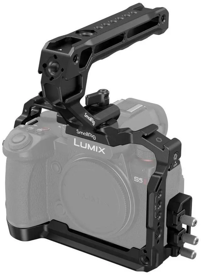 Where professional photography meets robust design, the SmallRig Camera Cage Kit for Panasonic LUMIX G9 II / S5 II and S5 IIX 4143 stands out. This high-quality, durable cage kit is specifically engineered to enhance handheld shooting and securely attach a range of accessories to your Panasonic LUMIX G9 II, S5 II or S5 IIX camera. The kit includes a sturdy camera cage, a HDMI & USB-C cable clamp, and a top handle. The top handle is ergonomically designed to improve grip and connects to the cage via a NATO clamp.