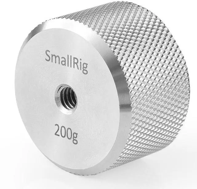 Offered in two distinct sizes, 100g and 200g, this counterweight caters to a range of balancing needs. It is equipped with a 1/4"-20 screw on one end and a 1/4"-20 threaded hole on the other, enabling you to connect one counterweight to another as per your specific requirements. This 200g counterweight is particularly compatible with SmallRig Counterweight Mounting Plates 2274, 2277, and 2283. Its compatibility with these mounting plates further extends its versatility, making it a valuable addition to your videography equipment. In conclusion, the SmallRig Counterweight (200g) for DJI Ronin S and Zhiyun Gimbal Stabilizer is a vital tool for achieving balanced, professional-grade footage.