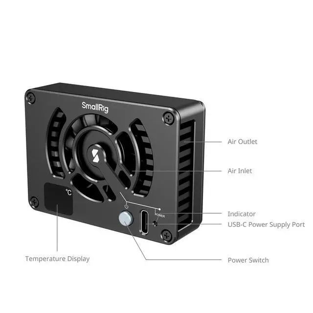 The system's sleek, aerodynamic design, inspired by supercar wheels, not only enhances its aesthetic appeal but also improves heat dissipation. Constructed from lightweight aluminum alloy, the SmallRig Cooling System offers both standard and enhanced cooling options with automatic temperature regulation, making it adaptable to a broader range of camera models from Sony, Canon, and FUJIFILM. This comprehensive cooling solution is a fusion of practicality and innovation, ensuring your camera operates safely and efficiently under demanding conditions.