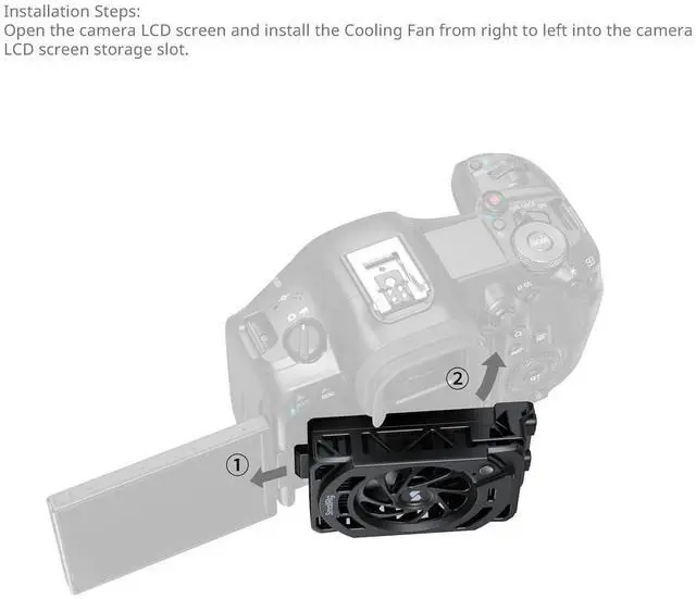SmallRig Cooling Fan for Canon EOS R5 Mark II & R5 5063 is engineered to address overheating issues in Canon mirrorless cameras, enabling extended high-quality video recording sessions. Its advanced cooling system, which pairs a 7000 RPM fan with TEC cooling technology, ensures optimal heat dissipation and prevents camera overheating. The dual-speed fan features high-speed and low-speed modes to accommodate various shooting scenarios. Its tool-free snap-on design enables quick installation and removal, ensuring easy access to both the fan and the camera's LCD screen. Additionally, it comes with a mount bracket for attaching Canon, Sony, and other mirrorless cameras. The cooling fan is also compatible with V-mount battery mount plate kits (ID 4064B, 4063B) and V-mount batteries (ID 3579, 4608, 4292) for efficient cooling and power supply.Cool Your Shots Efficient Heat Dissipation One-Click Mounting Broad CompatibilityTEC CoolingHigh-performance P-N particles for robust coolingLarge Heat SinkThermal conductive silicone gelHigh-Powered Fan BladesEfficient heat dissipationLonger Shooting Better Performance