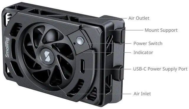 Reliable Cooling SystemIntegrated protections for safe, stable operation Overheat Protection Low Voltage Protection Overvoltage Protection Fan Blockage AlertSeamless Power and Cooling IntegrationCompatible with the SmallRig V-mount battery ecosystemCross-Brand Cooling SolutionRemove the mount bracket to use with Sony models