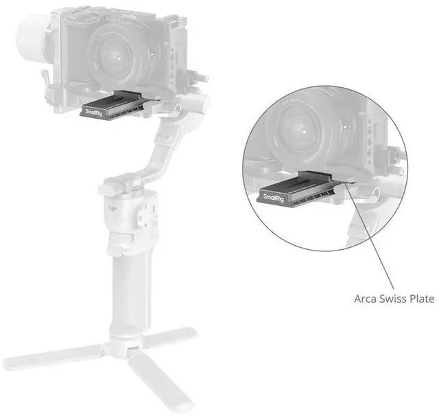 SmallRig Quick Release Plate for DJI RS 4 Mini 5336 is a dedicated plate designed to optimize shooting efficiency by enabling a quick switch between tripod and stabilizer setups. This quick-release plate for Arca-Swiss can be attached by tightening a thumbscrew, eliminating the need for additional tools. The Arca-type baseplate is designed with an adjustable anti-drop feature. This ensures compatibility with the original Arca-Swiss mount plate and provides protection against accidental detachment. It can also be adapted to standard Arca-Swiss L-shaped plates and cages by simply switching the anti-drop button. Additionally, the bottom of the quick-release plate is equipped with a gear rail, enabling smooth and precise front-to-back sliding adjustments.