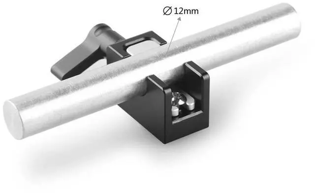 SmallRig Quick Release Rail Clamp (12mm Rod) 1403 could attach 12mm rod easily, and the rod could be locked tight by a wingnut. It is equipped with one 1/4"-20 threaded holed and an array of M3 threaded holes for more accessories. It is lightweighted, durable and ideal for DIY operations.
