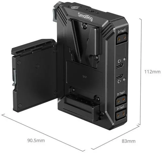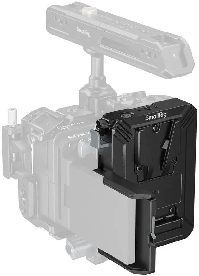 Compatible SmallRig V-mount batteries: 3579B / 4871 / 4872 / 3580B / 4929 / 4930 / 4292 / 4974 / 4608 / 4984 / 3581B / 4293 If the V-mount battery cannot be properly installed, the trigger safety lever may be engaged