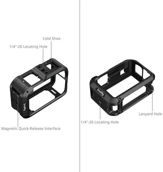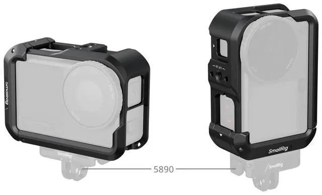 SmallRig Cage for DJI Osmo Action 6 5888 is designed specifically for DJI Osmo Action 6. This full-cover metal cage provides robust impact protection while ensuring unobstructed access to all buttons and ports. Multiple expansion interfaces enable seamless accessory attachment, enhancing shooting efficiency. The cage features a cold shoe mount for attaching lights or audio accessories, such as DJI Mic 2 or SmallRig Video Light (ID 5446). Additionally, it features magnetic quick release mounts on the side, compatible with DJI's original Dual-Direction Quick-Release Adapter Mount. The open-base design allows direct access to the camera's magnetic quick-release mount, enabling rapid horizontal and vertical shooting transitions when paired with SmallRig's Dual-Mount Quick Release Supports (5890, 5779, 5991).