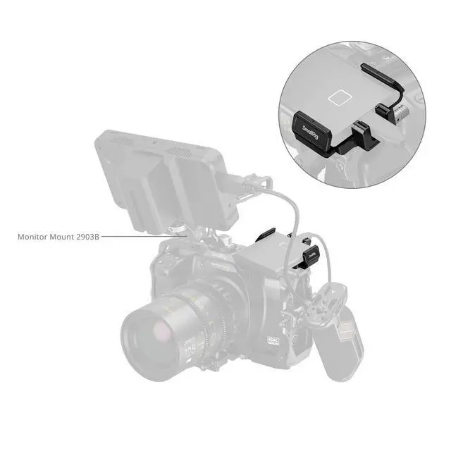 The mount serves as a sound solution for a BMCC 6K (Full-Frame) camera using SSD.