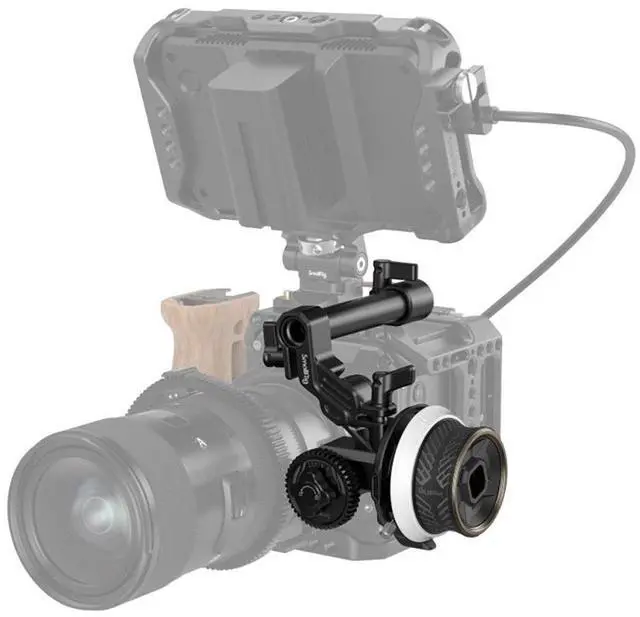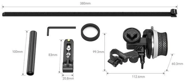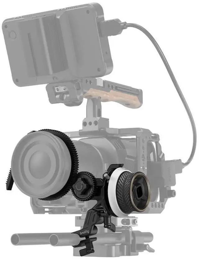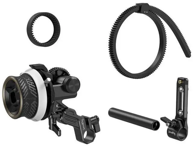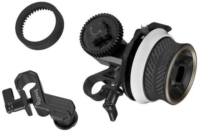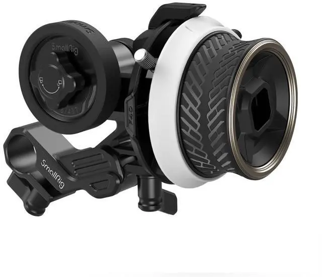 SmallRig mini Follow Focus F40 3010D, with its exquisite and compact design, aims at providing precise and quick focus control for video shooting. It is made of new materials for optimized zoom control and features an anti-sweat, anti-slip focus knob (inspired by a sports car hub) to feel comfortable. In the box, there is Rod Clamp (with NATO rail) 3011, which can be easily locked to the side or the top of most cages via a 1/4"-20 screw to allow reversing the focus action; a lightweight Silicone Gear (3852), which, when working with the M 0.8 -43T gear, drives lens through friction, without applying a follow focus ring, shortening your rig list and simplifying installation; and an all-metal 15mm rod clamp with jib, which has improved rotation angle to support different lenses.