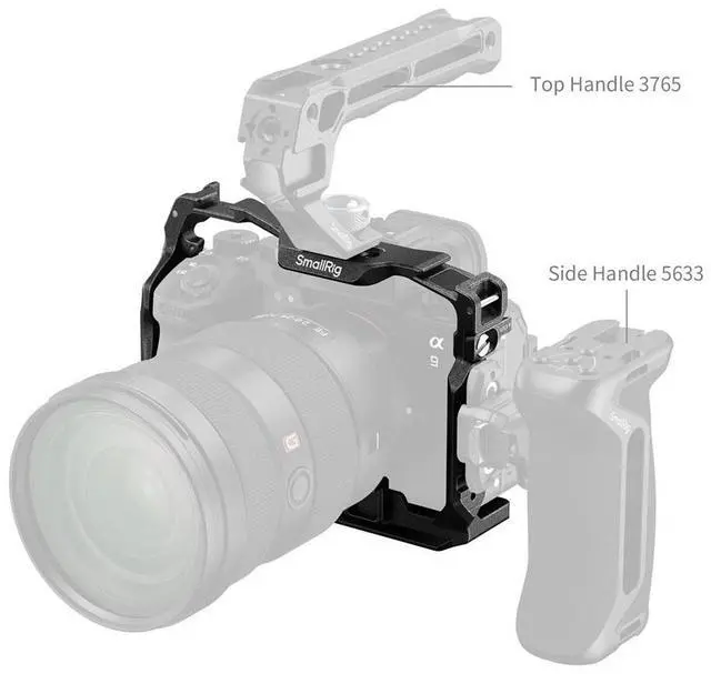 SmallRig Cage for Sony Alpha 1 II / Alpha 9 III 5642 is specifically engineered for wildlife photographers. The cage boasts a three-point locking system, using a bottom 1/4"-20 screw and dual side screws to secure the camera and prevent deflection, while built-in pads protect it from scratches. The integrated teleconverter support is compatible with Sony FE 1.4 x and 2.0 x models, reducing lens mount strain for more stable shots at long focal lengths. Equipped with multiple mounting interfaces-including 1/4"-20 threaded holes, 1/4"-20 locating holes, 3/8"-16 threaded holes, and ARRI 3/8"-16 locating holes-this cage accommodates a variety of accessories.