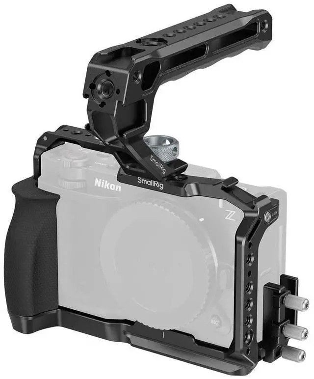 SmallRig Cage Kit for Nikon ZR 5647 is designed to enhance handheld operation and mobility, while providing versatile expansion options. Featuring an ergonomic silicone handle, it provides a non-slip, cold-resistant grip for comfortable and stable handheld use. A dedicated HDMI and USB-C cable clamp ensures secure connections for uninterrupted data transmission. The base features a built-in Arca-Swiss quick release plate, allowing for instant mounting on Arca-type tripods (ID 5290, 4222B) or DJI gimbals (RS 2, RSC 2, RS 3, RS 3 Pro, RS 4, RS 4 Pro) for rapid setup transitions.