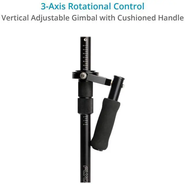 The vest features a torso-hugging chest pad anchored with an efficient 4-point buckle system, ensuring a custom fit that you can set and forget. The Vista II Camera Stabilizer Arm is a lightweight, dynamic double-section arm designed to bear camera weights up to 20lbs. It features a 16mm connecting pin for secure attachment to the handheld stabilizer, allowing for extended shooting times. The arm includes manually adjustable tension steel springs and a spring elasticity adjustable knob, enabling you to set the arm's position to your comfort level. The system also features an LCD mounting option at the bottom for enhanced user experience.