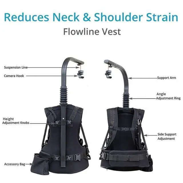From the innovative minds at FLYCAM comes the Flowline 750N Professional Ergonomic Camera Support Vest, a pinnacle of comfort and stability for professional videographers and filmmakers. This advanced stabilizing system is meticulously designed to alleviate the static load on the neck and shoulder muscles, efficiently redistributing it across the torso for extended shooting sessions without fatigue. Crafted with the utmost attention to detail, the Flowline 750N features a body vest constructed from soft, padded, breathable fabric, ensuring maximum comfort during prolonged use. The vest's height-adjustable properties allow operators to tailor the fit to their specific needs, ensuring optimal performance and ergonomic support.