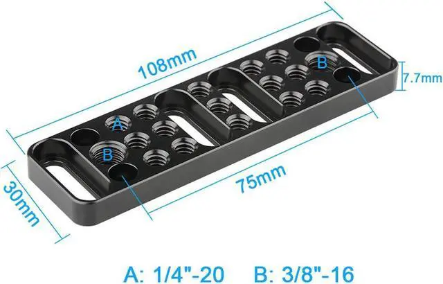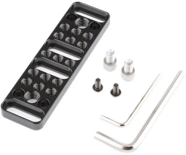 Take your camera rig to the next level with our Multi-Function Cheese Mounting Plate, a must-have for any videography enthusiast or professional. This high-quality, durable mounting plate is designed to enhance your shooting experience by providing a sturdy and reliable platform for your camera and accessory setup. Crafted from robust materials, this mounting plate boasts an array of industry-standard 1/4"-20 and 3/8"-16 threaded holes, offering unparalleled versatility for mounting a wide range of accessories. Whether you're looking to attach lights, microphones, or other essential equipment, this plate ensures a secure and stable connection to your camera rig.