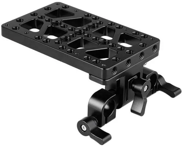 One of the standout features of this product is its numerous 1/4"-20 and 3/8"-16 holes. These holes offer the ability to mount a wide range of accessories to your configuration. Whether you need to attach articulating arms, rods, batteries, converter boxes, or various other camera accessories, this Cheese Plate Backboard provides the versatility you need. In summary, the CAMVATE Battery Backboard Cheese Plate with 360 Degree Swivel 15mm Rod Clamp for Anton Bauer Gold Mount Power Adapter is a versatile and essential tool for any professional in the field of photography or videography.