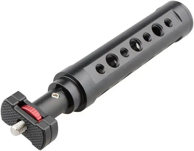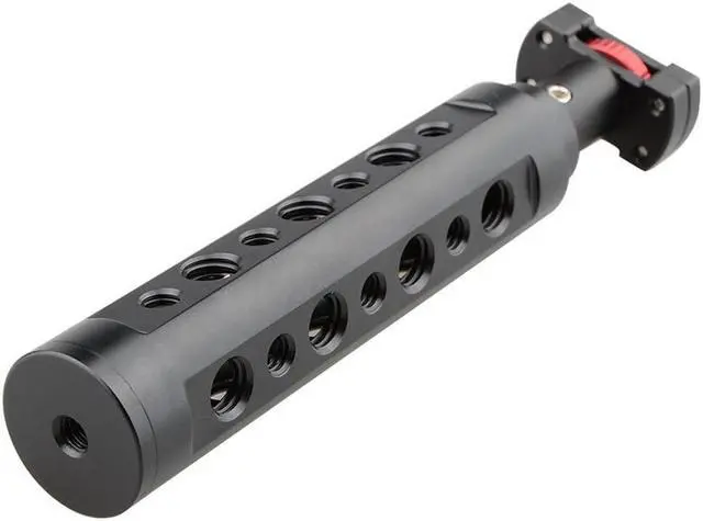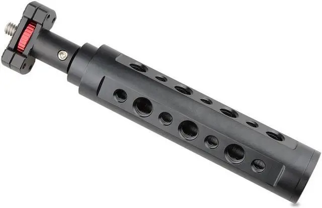 Find the perfect balance of durability and versatility with the Cheese Handle Grip Mini Rod Mount Stabilizer. Crafted from solid aluminum alloy, this lightweight yet sturdy accessory is designed to enhance your photography and videography experience. With a 1/4"-20 screw thread on top, it's ideally suited for DSLR camera rigs, monitors, flashlights, ball heads, and tripods, making it a versatile addition to your equipment collection. This compact and portable stabilizer is not just about providing a secure grip; it's also about expanding your creative possibilities. It features an abundance of 1/4"-20 and 3/8"-16 threaded holes on the handlebar, allowing you to attach a wide range of accessories.