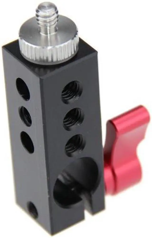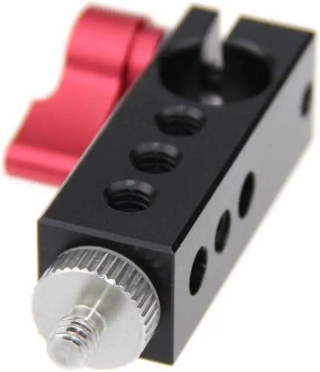 The inclusion of multiple 1/4" thread holes further enhances its versatility, enabling users to easily combine it with other accessories for a customized and efficient setup. The red lever provides a visual contrast for easy identification and operation, while the included Allen key allows for precise tension adjustment of the clamp. Whether you're mounting your device on a tripod or other support system, the Camvate 15mm Rod Clamp with 1/4"-20 Threads and Screw, Red Lever, offers a reliable and effective solution for maintaining stability and easy adjustment of your camera or camcorder's position.