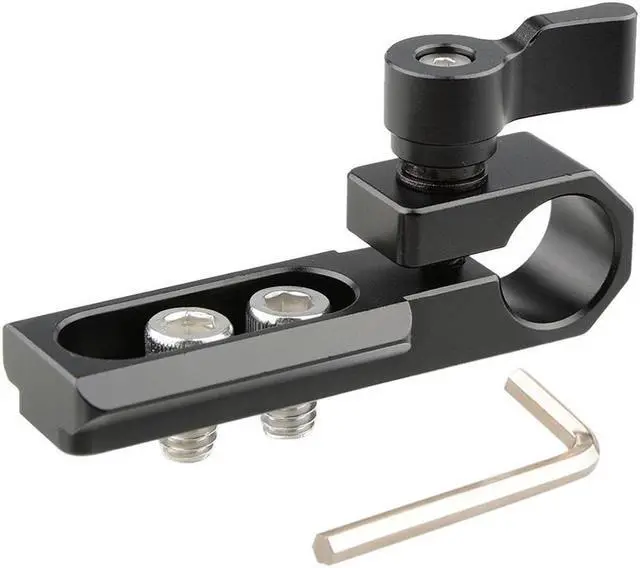 Experience the versatility and convenience of the Single 15mm Rod Clamp with NATO Rail, a must-have accessory for professional photographers and videographers. This high-quality rod clamp is designed to seamlessly attach to top handles, plates, and cages of various DSLRs including but not limited to GH5, Emos100, and 5DMarkIII. The rod clamp is equipped with two 1/4"-20 screws, making it an ideal solution for rod extension and enhancing your camera setup. It boasts a 15mm rod port, designed to be compatible with any 15mm rod, providing you with a wide range of options for your photography and videography needs.