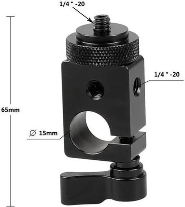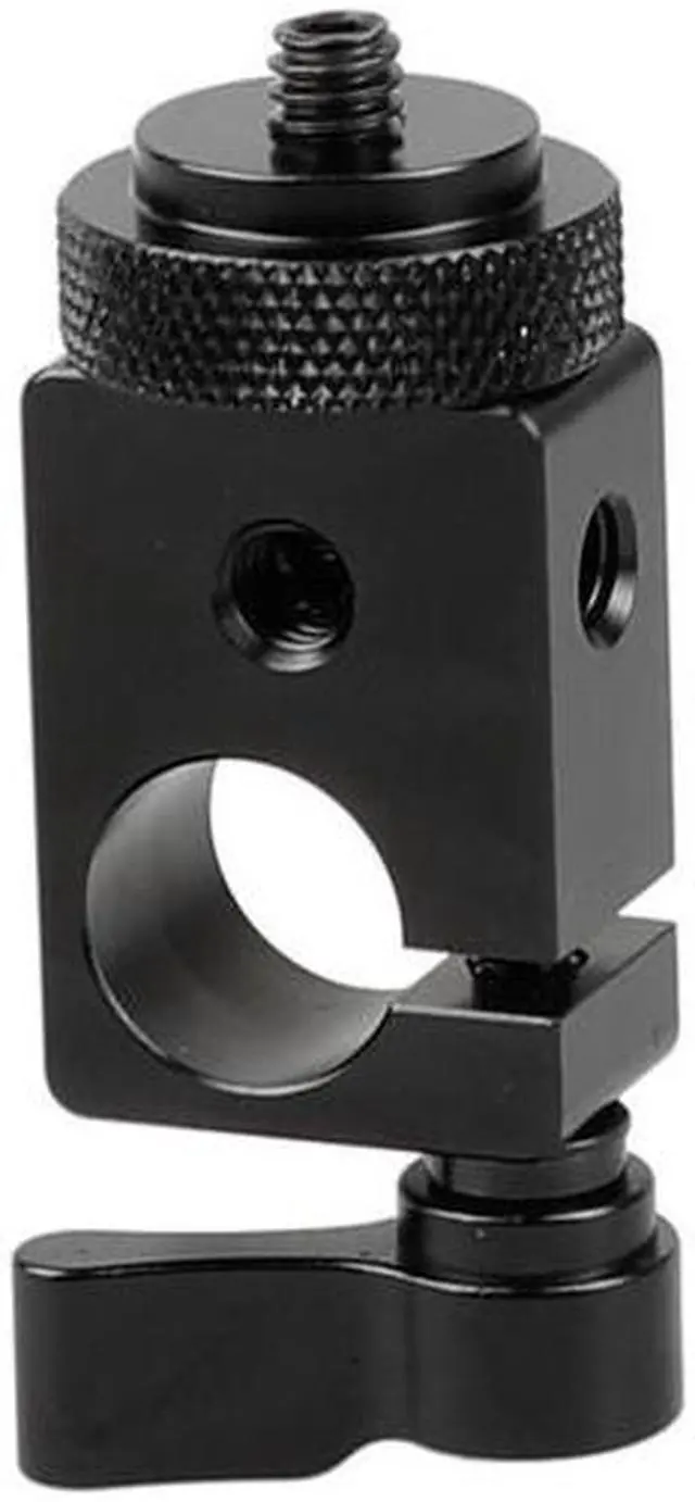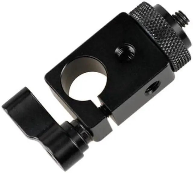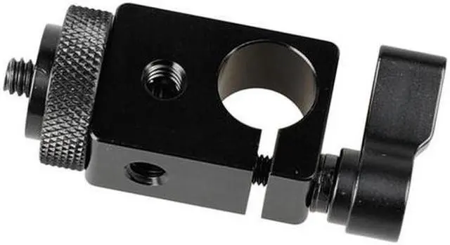 From professional photography to videography, the 15mm Single Rod Clamp with 1/4"-20 Screw Adapter and Black Lever is an essential tool for any camera setup. This sturdy and reliable clamp is specifically designed to securely fasten a 15mm rod to your camera cage, providing a stable base for your equipment. The rod clamp's unique design features a 1/4"-20 screw adapter on top, allowing for seamless attachment of additional devices such as camera monitors or microphone devices. This feature expands your mounting possibilities, enabling you to customize your setup to suit your specific needs.
