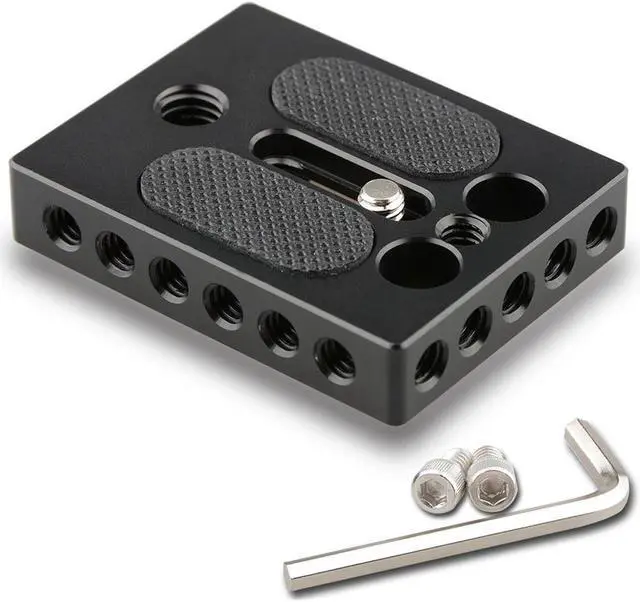 It comes with a 1/4"-20 minus fixing screw for easily fixing to the camera. The two anti-skid rubber pads protect the camera from stratch.