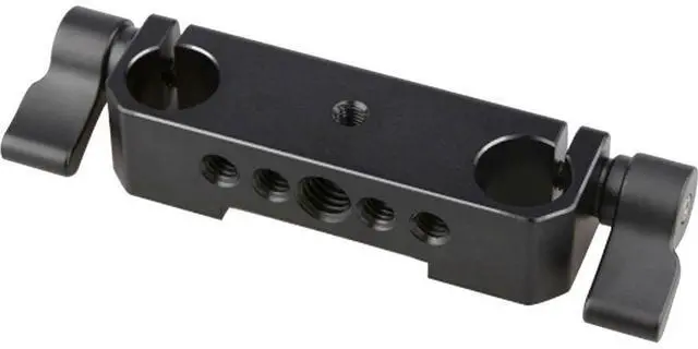 The versatility of this railblock is further enhanced by the inclusion of five strategically placed 1/4"-20 tapped mounting holes on both the top and bottom surfaces. This thoughtful design allows for a multitude of mounting options, making it an adaptable choice for photographers and videographers looking to customize their rigs for various shooting scenarios. In addition to its core functionality, the 15mm Railblock serves as a compatible accessory for top handle and top plate handle grips, particularly for the Blackmagic Cinema Camera (BMCC). This compatibility underscores its role as a versatile and indispensable tool in the filmmaker's kit.