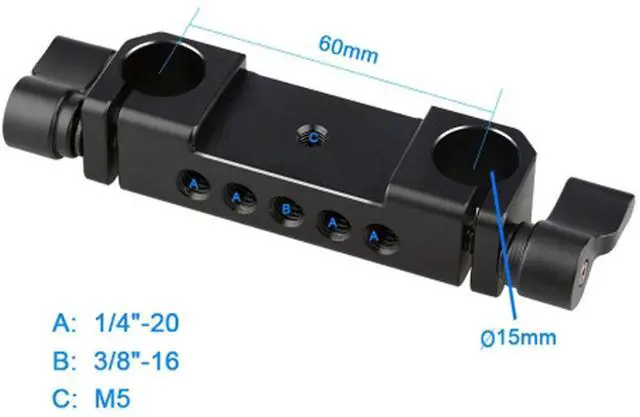 After careful design and engineering, the 15mm Rod Clamp Railblock emerges as an essential component for any DSLR 15mm Rail Rig Rod Support System. Crafted with precision, it boasts standard 15mm rod holes, ensuring seamless compatibility with industry-standard equipment. The meticulous 60mm center-to-center spacing distance is optimized for balance and stability, providing a reliable foundation for your camera setup. Constructed from high-quality materials, this rod clamp railblock is not only durable but also sturdy and robust, capable of withstanding the rigors of both studio and field use. Its reliable build quality ensures that it can support a range of accessories, from lights and microphones to monitors and other essential gear, without faltering.