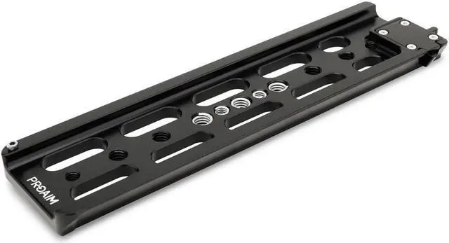 If you're looking to enhance the stability and versatility of your camera setup, the ARRI Standard 10" Dovetail Plate is an essential piece of equipment for filmmakers and videographers. This robust and reliable Proaim 10" Dovetail Plate is designed to conform to the ARRI standard, ensuring a perfect fit with a wide range of camera rigs and support accessories when paired with an ARRI standard quick release camera base plate. Crafted from high-grade CNC Aluminum, this dovetail plate offers a solid foundation for your camera while maintaining a lightweight profile, making it an ideal choice for both studio and field use.