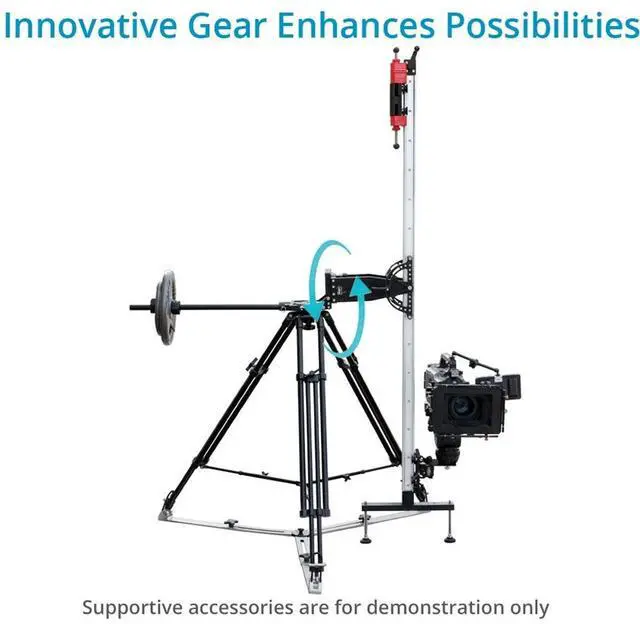 When used as a Mini Jib, the Cambird Slider operates a working diameter of 5.25 ft on the horizontal, allowing for tilt, pan, and 360-degree movement around the base tripod. The maximum and minimum operating heights are dependent on the height of the tripod. The Cambird Pro can also be transformed into a 6ft vertical tower, offering an incredible 360-degree vertical rotation capability. This unique feature provides unlimited shooting options, ensuring precision camera moves that are smooth and steady. In Hi-Hat mode, the Cambird Pro can be used as a tabletop camera support, perfect for capturing ground-level shots.