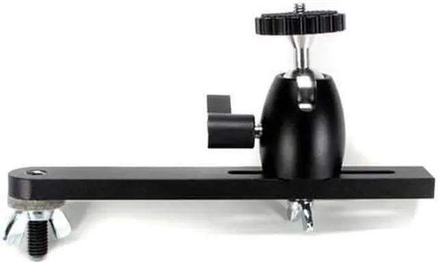 The DanaDolly adjustable monitor mount for small monitors 5lbs and under. Threaded 3/8" stud goes into available hole in Dana Dolly and secures with a wingnut. The other end has an adjustable end that adjusts out and swivels, to allow comfortable viewing. Has a 1/4"x20 threaded stud for monitor to mount on. Aluminum and steel construction. Black anodized. Not recommended for monitors over 5lbs.