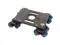 The wheel trucks on this dolly swivel, offering the flexibility to ride on both straight and curved tracks, which are to be sourced separately. The DanaDolly Original Rental Kit is designed for compatibility with standard speed rail or Schedule 80 aluminum pipe. It comes with two original style track ends that accept inch and a quarter pipe, fitting seamlessly into available standard Junior stand receivers. A center support is also included for stability during long track runs or when using heavy cameras. The dolly platform, machined from durable aluminum, features a standard Mitchell mount, including a 2.75" center hole with a machined keyway.