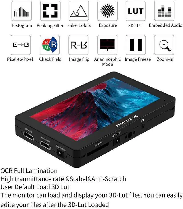 This user-friendly design frees your hand and makes operation a breeze. Supporting 4K HDMI input and loop out, this monitor is capable of handling 4K HDMI signals, including 4096X2160P at 24Hz and 4K UHD 3840X2160P at various frequencies. This means you can live view your image or video on the A6 Plus with HDMI cords, while the HDMI loop output offers secondary HDMI monitor connections. The A6 Plus is a 3D LUT supported monitor, allowing you to load, edit, and display your 3D Lut files via the SD card slot with ease.