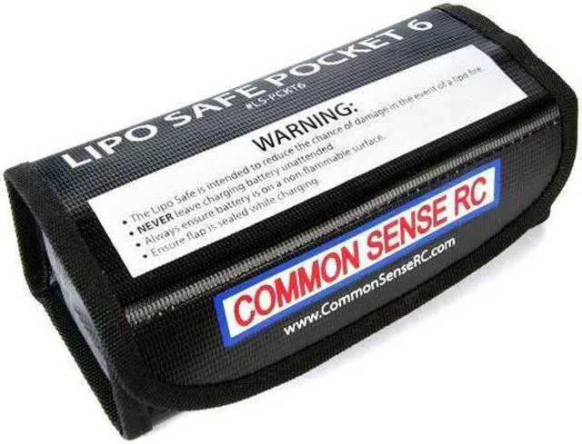 Our Lipo Safe Pockets were designed to be the perfect size and shape to fit a single Lipo battery and help minimize clutter in your work area. This model (7.25" x 3" x 2.4") was made to accommodate standard 6S Lipos (hence the 6 in the product name) up to about 5000mAh. It also works great for multiple smaller lipos.
