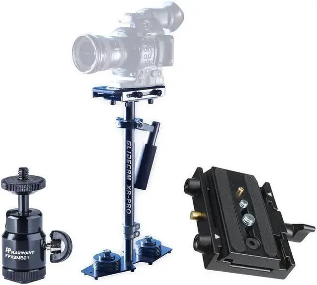 Moreover, the Glidecam XR-PRO comes bundled with essential accessories that enhance its functionality. The included Manfrotto 577 Rapid Connect Adapter Assembly facilitates swift and secure camera attachment, streamlining your setup process. The Mini Ballhead with Cold Shoe further extends the stabilizer's utility, allowing for the easy mounting of additional equipment such as microphones or lighting, adding to its sturdy and portable nature.