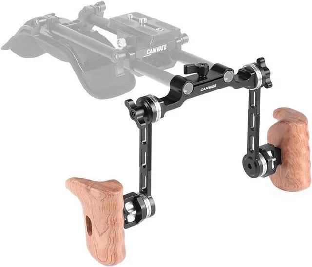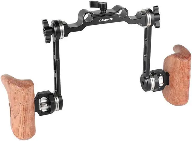 When seeking a robust and versatile solution for camera stability, look no further than the CAMVATE Rosette Style Wood Handle Kit with 15mm Rod Clamp. This high-quality, dual wooden handgrip system is designed to enhance your DSLR shoulder mount rig setup, offering unparalleled control and comfort. Engineered with ARRI rosettes M6 connection mount arm, this kit provides the flexibility to orientate or adjust the handgrip in virtually limitless positions. This feature ensures optimal customization to suit your filming needs, whether you're capturing still photography or engaging in dynamic videography projects. One of the standout features of this CAMVATE Wood Handle Kit is its spring-loaded knobs.