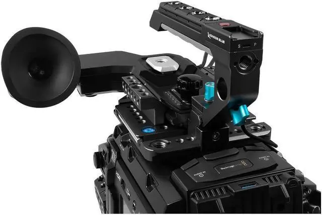 With the Raven Black Base Rig for Blackmagic Design URSA Mini 12K/ 4.6K /4K, you can enhance your camera setup with a modular design that allows for independent mounting of each plate. The top plate features dual NATO rails, a bubble level, and both 1/4"-20 and ARRI 3/8"-16 threads, making it compatible with the Blackmagic URSA viewfinder. The side plate also boasts dual NATO rails, a cold shoe, and 1/4"-20 and ARRI 3/8"-16 threads, with a relocated rosette for added convenience. The Trigger Pro Top Handle, a standout feature of this base rig, comes with a start/stop record button.