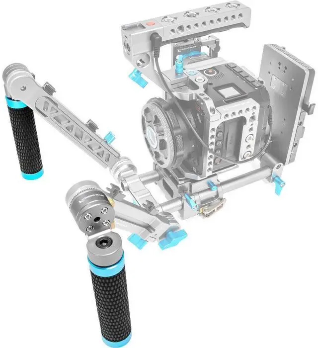 The set also includes a dual rod clamp, a feature that sets it apart from other hand grip sets. This double rod clamp allows you to attach and adjust rosette-mount hand grips on your shoulder rig, offering a level of customization that can cater to your specific filming needs. Please note that the 15mm camera rods required for mounting are sold separately. Whether you're a professional videographer or a photography enthusiast, this versatile and easy-to-use Quick Release Rosette Hand Grip Set with Dual Rod Clamp can elevate your camera rig setup, providing you with the durability and functionality you need for your projects.