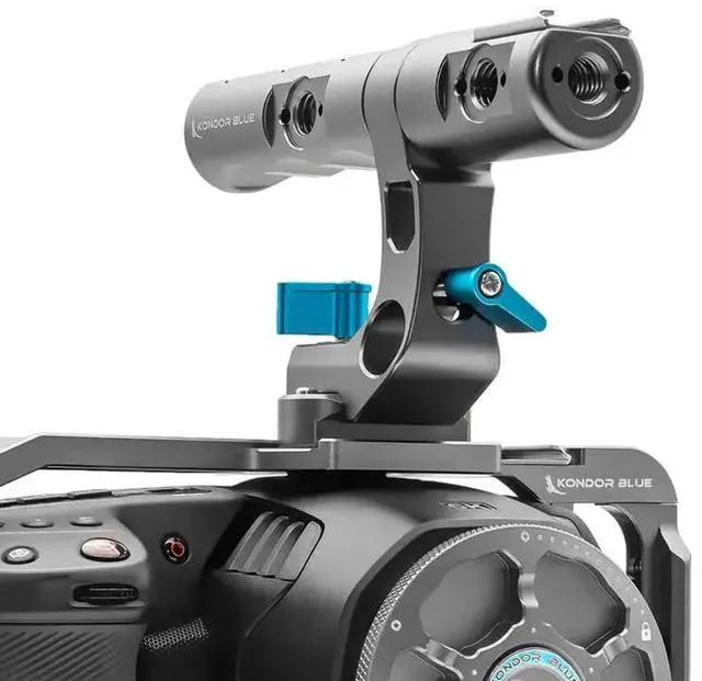 It's a versatile tool that expands your camera's capabilities, offering a NATO rail, multiple 1/4"-20 accessory threads, and several 3/8"-16 ARRI-style threads. These features allow you to attach a variety of accessories, enhancing your camera's functionality and your creative possibilities. In addition, the extension kit includes built-in cable clamps and strap slots, ensuring a secure and organized setup. This thoughtful design helps prevent cable clutter and ensures your equipment is always ready for action. Choose the Kondor Blue Space Gray Battery Grip Extension Kit for your Blackmagic Pocket Cinema Camera 6K Pro and elevate your filmmaking experience.