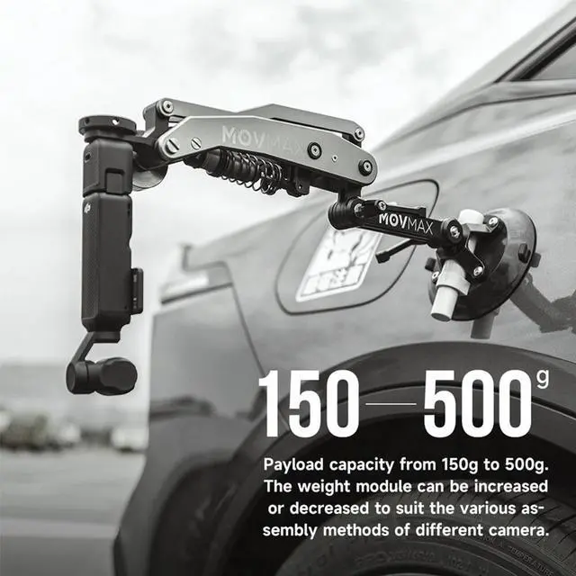 This significant improvement in stability, combined with its impressive load-bearing capacity, makes it an essential tool for both professional videographers and passionate hobbyists. Equipped with two steel counterweight modules of 100g and 50g, the Blade Arm supports a total arm load range of 150g to 500g. This adjustable counterweight system allows you to customize the balance according to your specific equipment setup, ensuring optimal performance and precision. Installation versatility is another hallmark of the Blade Arm for DJI Pocket 3. Whether you're capturing high-speed chase scenes, detailed close-ups of drivers, or the intricate mechanics of wheels and shock absorbers, this accessory offers a variety of mounting positions.