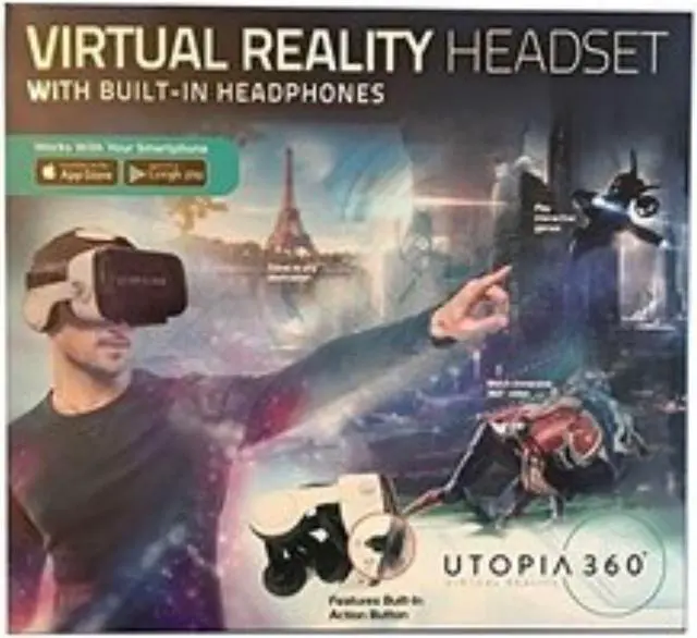 This product features a Virtual reality headset with built-in headphones.
