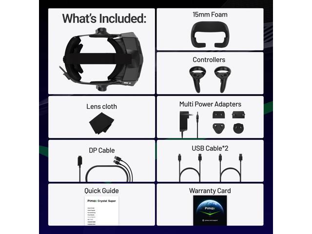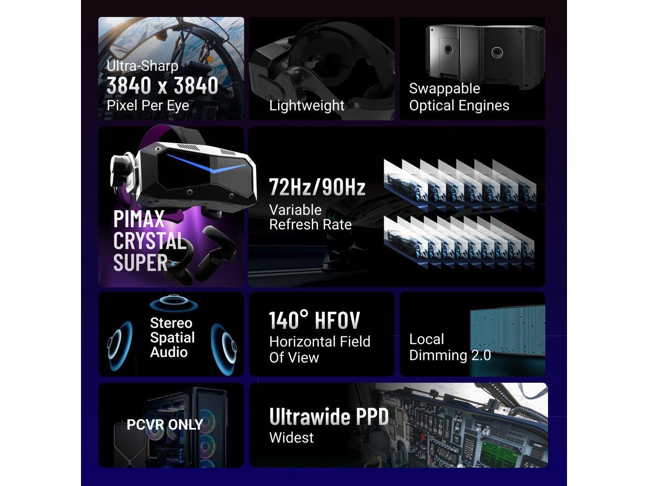 Pimax Crystal Super PCVR Headset - Ultra Wide 50 PPD, 3840x3840 per eye Ultra-clear Resolution, 140° HFOV, Lightweight, for Flight / Racing Sim & other VR Gamings, Subscription Required