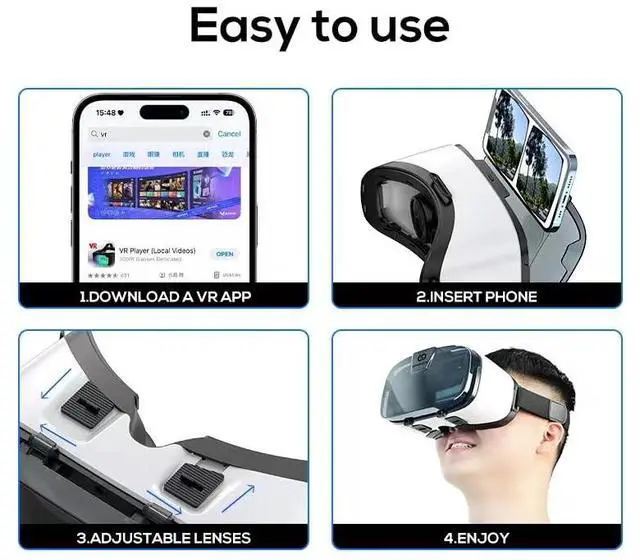 1Compatible with Phone Model: Virtual Reality Headset work for phone with 4.5-6.3 inches screen, such as for iPhone 15 14 13 12 11 , 8 Plus | 8 | 7 Plus | 7 | 6s | 6 | XS MAX | XR | X; for Samsung Galaxy S22/S21/S21 Ultra/S20/S10/S10e/S10 Plus/S9/S9 Plus/S8/S8 Plus/ Note 10 Plus/Note 10/ 9/8/A20e/A50/