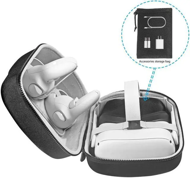 Excellent Protection: Perfect carry/storage case which can protects your Oculus Quest 2/Oculus Quest from scratches, shock and splashes, also protect the sensitive lenses from harmful substances and sunlight while you're on the go;
