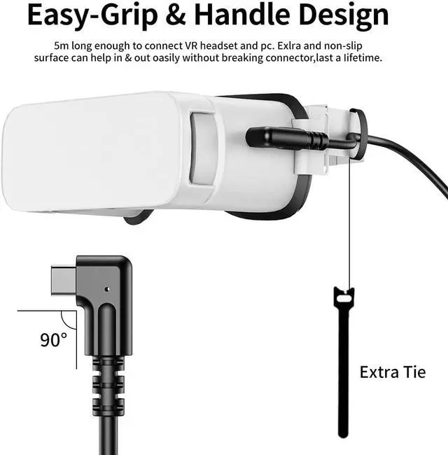 Right-angled design perfectly match the Oculus Quest and Oculus Quest 2 VR headsets, which does not stick out and provides you a comfortable grip; The slim metal connector has a snug and secure fit in the USB-C female port.