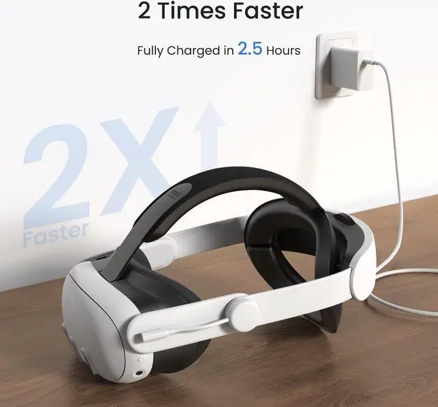 Two Times Faster Power up both K4 Boost and Quest 3S/3 simultaneously with DualBoost Charging system; fully charged in just 2.5 hours; 45W adapter delivers 25W output to Quest 3S/3; reach 65% charge(Both HMD&K4 Boost) in 60 minutes for 2.5 hours of playtime.
