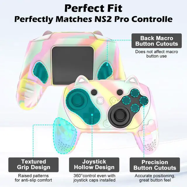 Perfect Fit for Switch 2 Pro Controller --- Includes 1 controller silicone skin, 6 thumbstick grips. This Switch 2 Pro controller case cover is not only a practical accessory but also an ideal gift for Switch 2 Pro (2025) players. Fashionable and durable, it provides perfect protection for the new Switch 2 Pro!