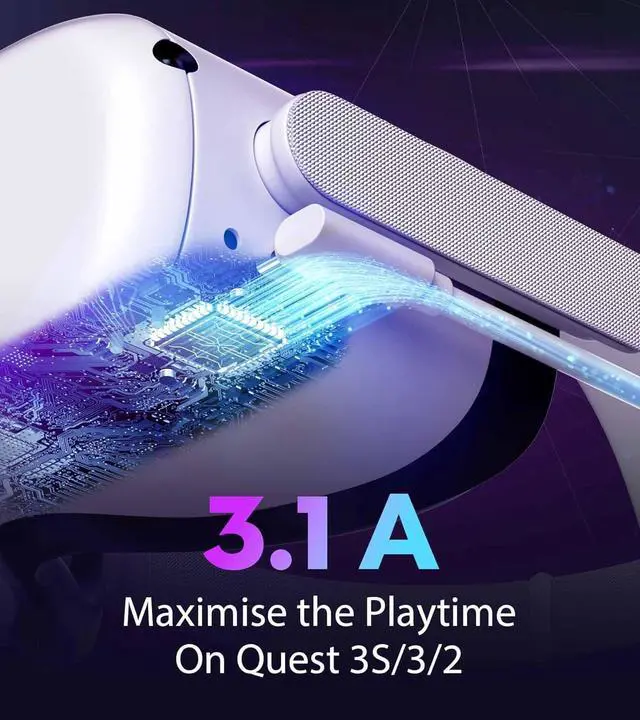 long extension cable for Quest 3S/3/2 gives you maximum freedom of movement with no restriction and upgraded version. Playing games and watching movies with your vr headset charging link wire, you will enjoy a entertainment experience.