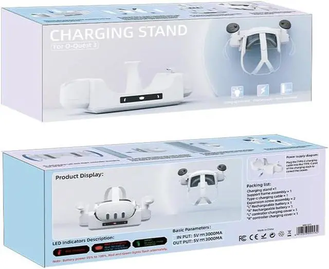 Usb-C Fast Charging: USB-C fast charging technology, our charging station provides an efficient and fast charging experience, keeping your Quest 3 fully charged and ready for your next adventure in the shortest amount of time.