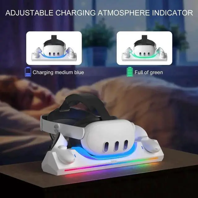 Fast Charging: We designed and optimized the battery of charging station to power up the upgraded performance of M-e-ta Quest 3/Quest 3S, equipped with 30W charging adapter, the headset takes 2.5 hours to fully charged and the controllers within 4 hours.