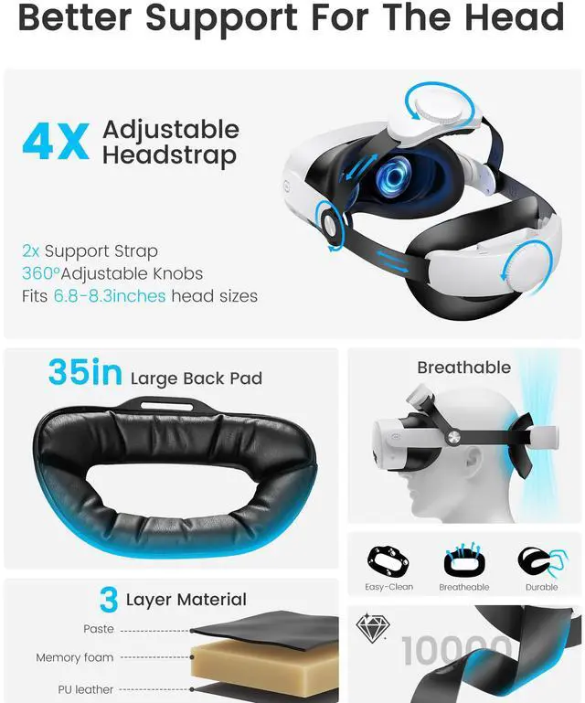 Enjoy 4-way precision adjustment, machine-washable pads, a full adapter set, and our 30-day satisfaction policy—all thoughtfully designed for lasting VR comfort.